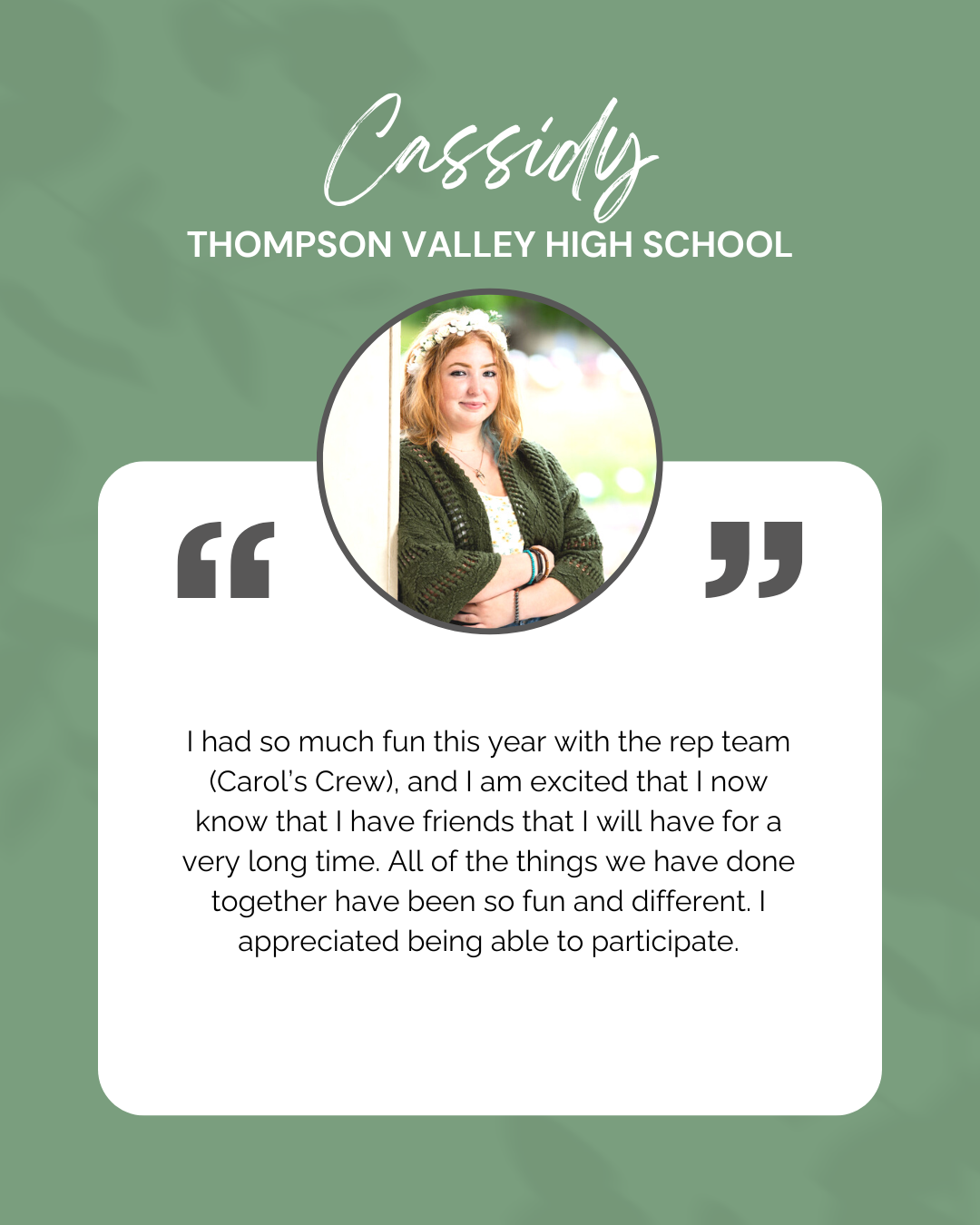 Carol's Crew isn't just a rep team. It's an exclusive high school experience unlike anything else in Northern Colorado. Freshmen, Sophomores, and Juniors get access to styled shoots, special events, new friendships, and the kind of confidence-building experience that stays with them long after graduation. Applications open just once a year, spots are limited, and they fill fast. This is one your teen won't want to miss.